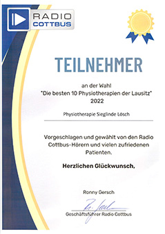 Die Praxis für Physiotherapie Naturheilpraxis Sieglinde Lösch im Ärztehaus Calau, bietet Ihnen ein umfangreiches Leistungsspekrum an vorbeugenden, therapeutischen, rehabiltativen auch alternativen Verfahren zur Behandlung von Schmerzzuständen und reversiblen Funktionsstörungen des Bewegungsapparates an.